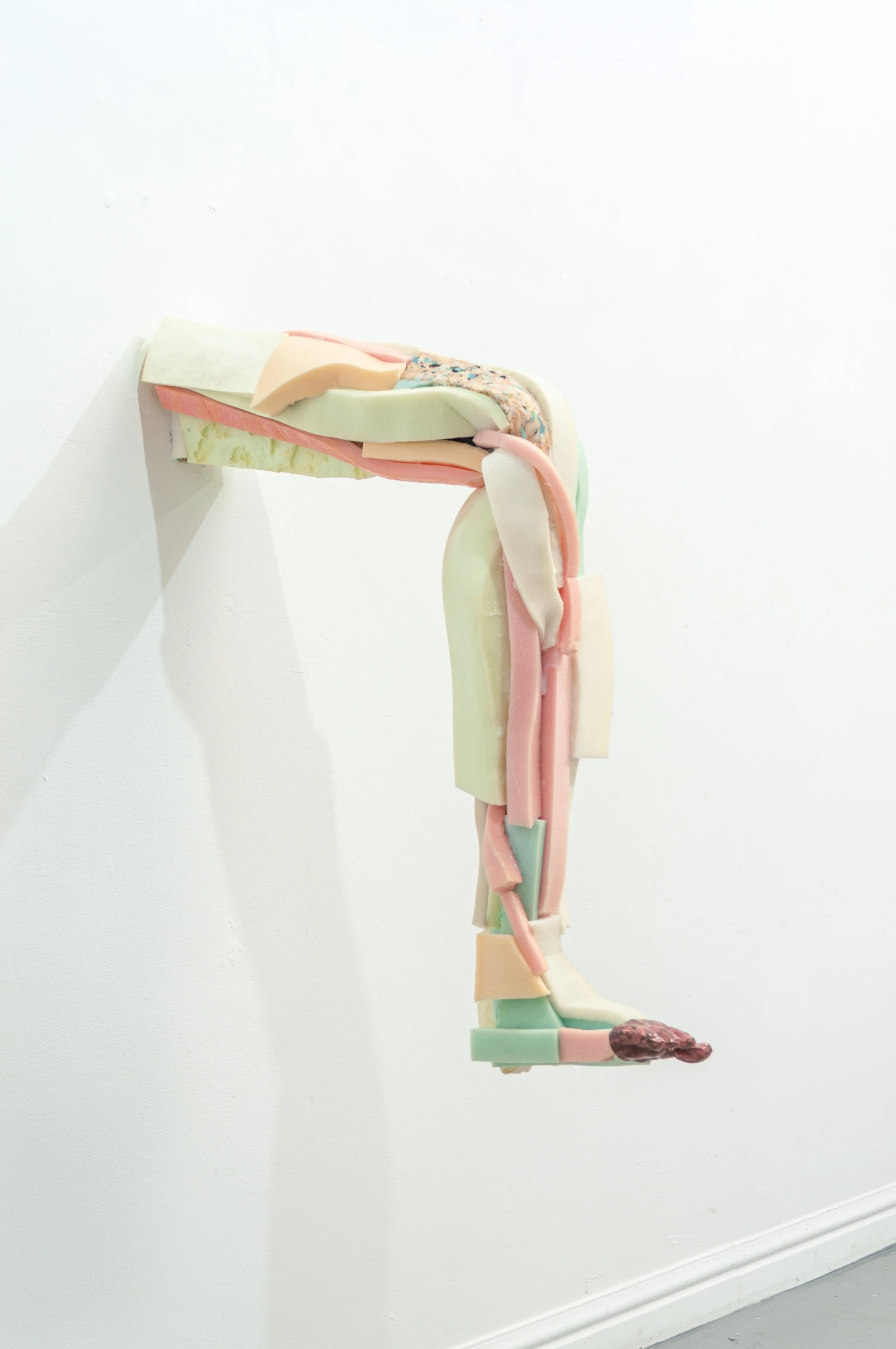 Glazed ceramic, wood, foam, glue, pink grip, bracket, hinge